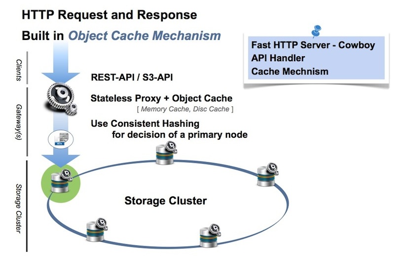 LeoGateway also provides built-in support for the object cache to realize keeping high performance and reduction of traffic between LeoGateway nodes and LeoStorage nodes.